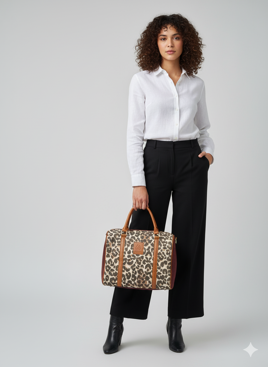 Our Denim Tiger Print Duffle Bag is the perfect blend of style, durability, and functionality. Crafted with premium canvas fabric, denim side panels, and sturdy leather-style handles, this duffle bag for women in Bangladesh is ideal for travel, gym, or weekend getaways. The trendy animal print design gives it a fashionable edge, while the spacious interior ensures you can carry all your essentials with ease. Whether you’re looking for a stylish denim travel bag, a lightweight gym duffle, or a fashionable overnight bag, this versatile piece is a must-have for every wardrobe.